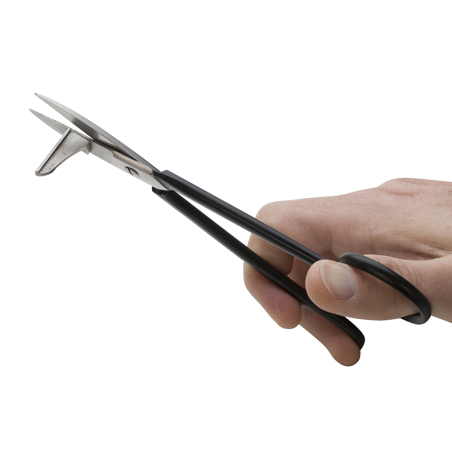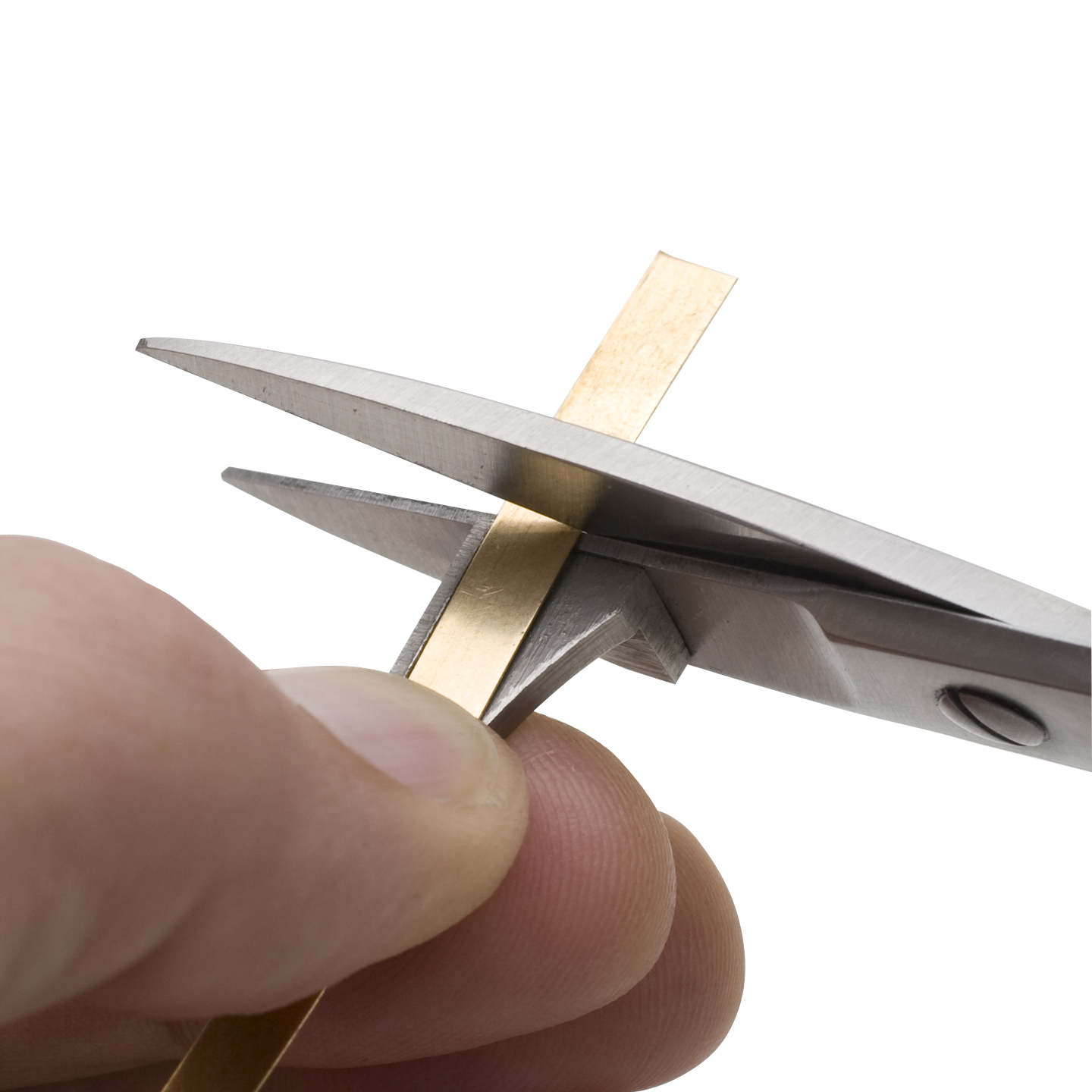 This new metal cutting shear, designed by Jay Whaley, solves the problem of cutting square edges on bezel wire! Using the guide attached to the blade, rest your bezel wire up against the ridge of the guide and cut! A nice square cut at the end of the bezel wire every time! Cuts up to 16 gauge fine silver.