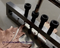 Create holes for wire rivets in 18, 16, 14 and 12 gauge. Punch holes up to 18 gauge metal sheets or multiple metal sheets together with ease.