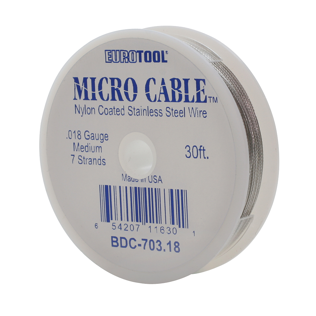 Unbreakable stainless steel, nylon-coated wire with seven strands for superior strength. Super tough cord that will not be cut by rough edges. Steel, .018" (Medium), 30 Feet