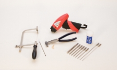 Our deluxe coiling kit includes everything needed to make and cut coils for use in jewelry arts or as jump rings. This kit includes our Quick Coiler set with 8 standard coiling mandrels (sizes 1, 2, 2.5, 3, 4, 5, 6, 8mm) our coil holding pliers to securely hold the coil when cutting, and a quality 3" sawframe and 1 dozen blades for cutting the coil into rings. Also included is a 2oz tube of Cut Lube for lubricating the sawblades for a cleaner, easier cut.