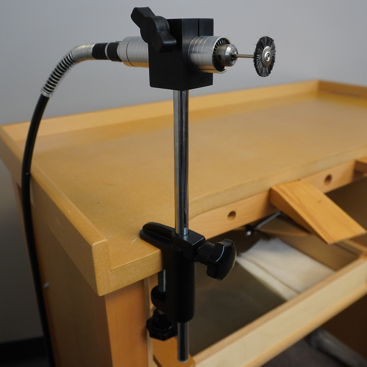The new FlexHelper Handpiece Holder has arrived. A must-have bench tool capable of rotating 360° and standing 12" tall. This handpiece allows free-hand accessibility while sanding and polishing. Not only does the Handpiece Holder cut your work time in half, but you can work smarter and safer. Make the smart move and invest in the FlexHelper Handpiece Holder.