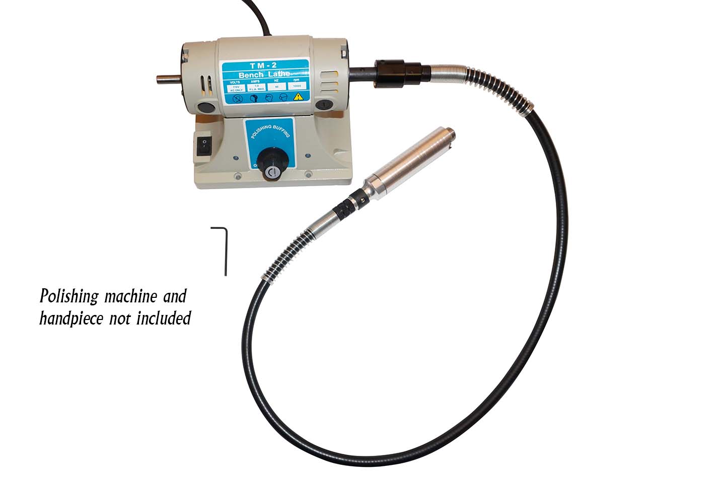 The FlexHelper converts the Eurotool Benchtop Polisher into a Flexshaft. Compatible with most handpieces, including Eurotool Quick-Change and Hammer Handpieces. Use with Eurotool Benchtop Polisher POL-260.00 or any polisher/ bench lathe with 5/16" motor post. 39" in length.