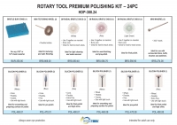 This Rotary Tool Premium Polishing Kit contains a variety of mounted and unmounted polishers for preparing jewelry for that final polish. Great for light cleaning, oxide removal, texturing, smoothing, pre-polish and final polish. This 24pc set comes with a convenient blue stand for storage and easy access as well as an ideal use chart for each polisher.