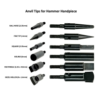 Set of 6 assorted threaded anvil tips can be used with the Eurotool hammer handpiece (HDP-155.00) or your favorite hammer handpiece.