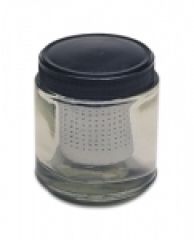 The perfect way to wash diamonds or other loose stones with alcohol. Features an inside perforated cup and metal lid to assure proper cleaning. Glass jar is 2-1/2" in diameter and 2-1/4" high (6.35mm x 57.2mm).