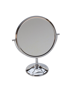 Deluxe chrome all steel mirrors feature an extremely stable base, with a non-scratch, non-slip pad. The reflectivity of the glass in our mirrors is exceptional. One side is normal; the other side has a 2X magnification. This is a truly high quality series at an excellent price. Individually boxed. 7-1/2".