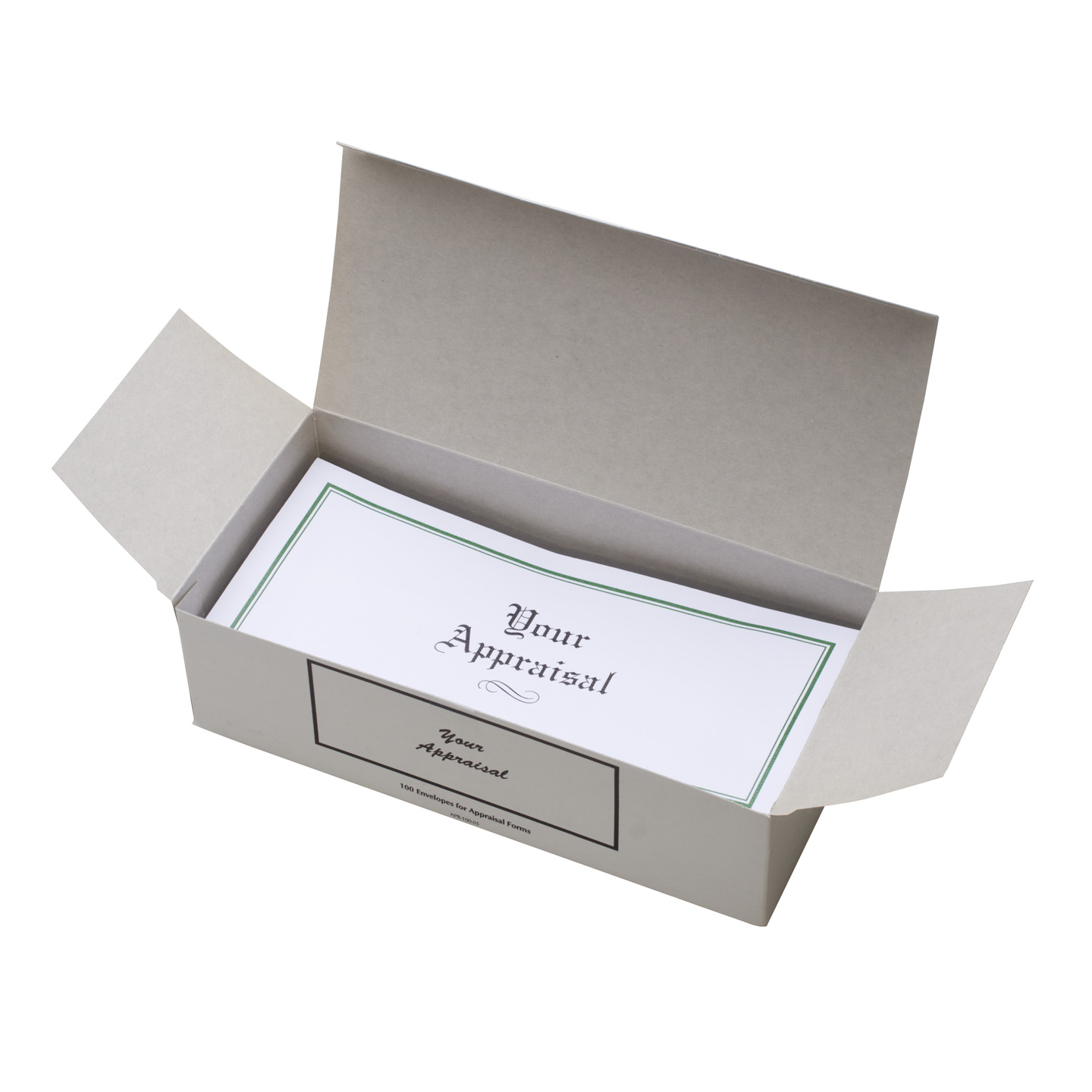 Box of 100 Appraisal Envelopes. These envelopes can accompany the Appraisal Certificates (APR-100.00). For a combination pack of Appraisal Envelopes and Certificates, see APR-100.50. This item is ENVELOPES only.