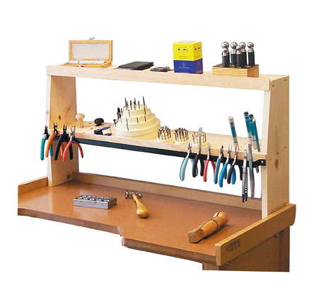 Keep your tools handy and organized, while giving yourself more workspace, fits perfectly on the back of a bench or on a work table. Store pliers, shears and other tools so they'll be within easy reach. Burs, files, gauges, ShelfMate is ready to use and saves time. Your time is valuable, save some with ShelfMate. Designed and manufactured exclusively by EURO TOOL. Easy assembly and instructions included. 35" L x 7-1/4" W x 17" H. 11 lbs.