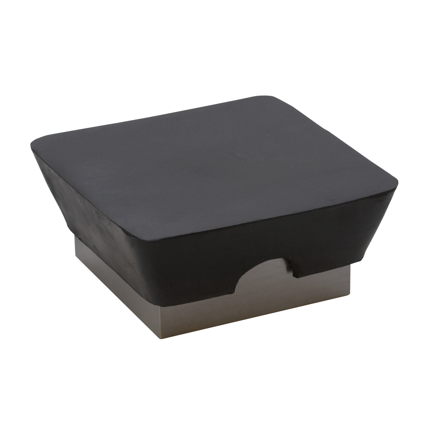 Try this versatile bench block for all your stamping and dapping needs. 2-1/2" x 2-1/2" steel block sits inside rubber base which is tapered for a better grip and has convenient finger slots to lift the steel block out of the base with ease. Hard vulcanized rubber is excellent when a softer surface is needed. Flip it over to reveal the hardened steel block for flattening, chasing and stamping. Weight: 1-1/2 lbs.
