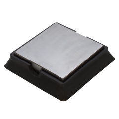 Try this versatile bench block for all your stamping and dapping needs. 4" x 4" steel block sits inside rubber base which is tapered for a better grip and has convenient finger slots to lift the steel block out of the base with ease. Hard vulcanized rubber is excellent when a softer surface is needed. Flip it over to reveal the hardened steel block for flattening, chasing and stamping. Weight: 4.05 lbs.
