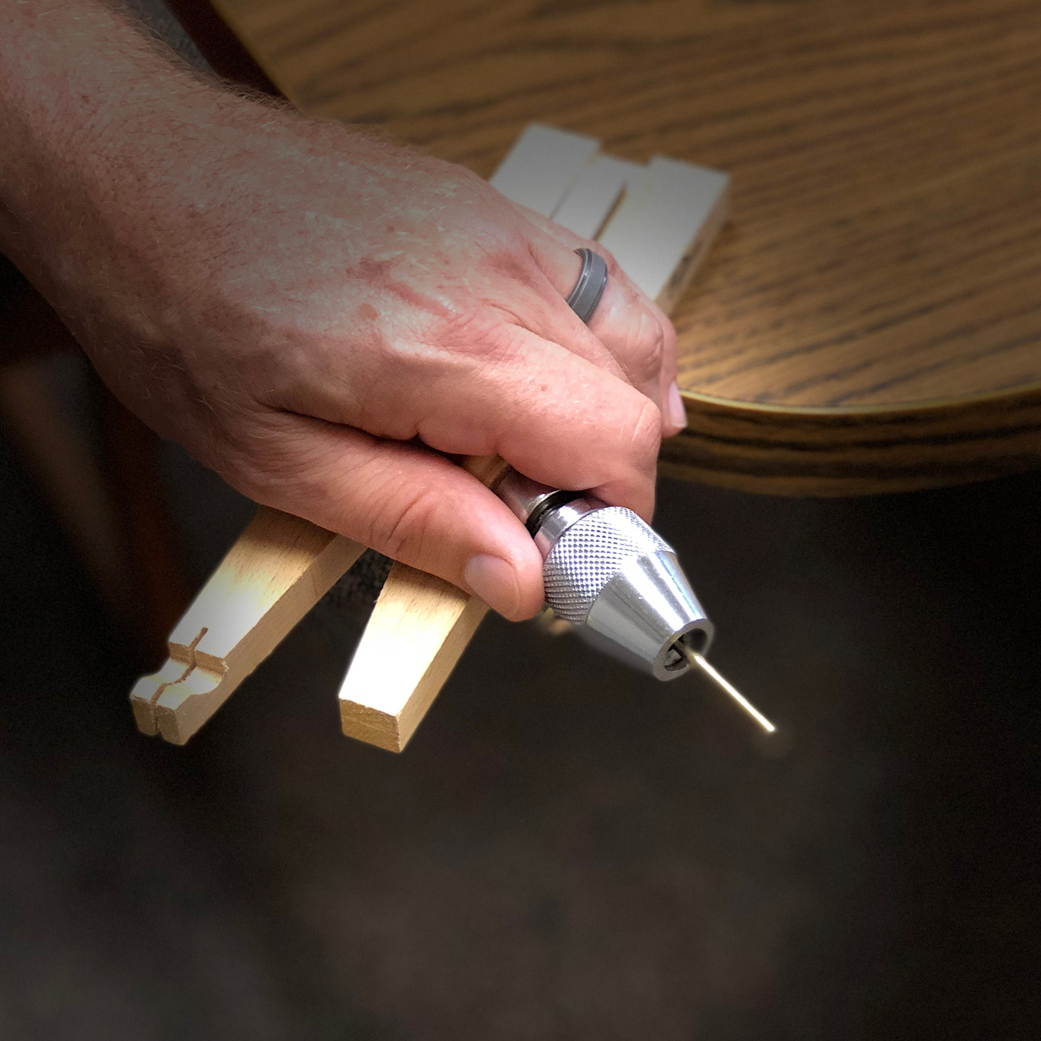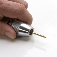 The 6 Inch Hand Vise by Jay Whaley is an ultra convenient vise designed to open from 0-6mm. The flat side of the handle allows for holding against a flat surface. It is hollow from end to end to allow extra long tube or wire to extend for ease of work. The vise features a large knurled chuck that easily tightens, and an ergonomic grip.