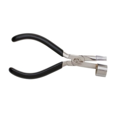A revolutionary idea, simple, yet extremely effective, invented and patented by a master jeweler. We call them Wrap n' Tap Ring Looping Pliers, because the jeweler can wrap ring stock around the barrel shaped jaw, then tap it slightly on a mandrel and instantly make a complete ring, half or quarter shank for repair. This 19mm barrel is perfect for gents' rings. Pliers are especially good for hollow rings and rings with a design on one side, because the lower jaw is covered with PVC tubing and cannot scratch or mar. You get a perfect circle time after time, with stock up to 2mm thick. Made of stainless steel with PVC cushion grips. Length 6" (150mm).