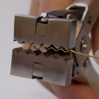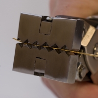 Give a new twist to your designs with our new Parallel Action Zig-Zag Bending Plier. This simple to use parallel plier reduces repetitive wrist motion and saves time because it creates several zig-zags all at once. Simply place the wire in the jaw and squeeze - instantly you have one inch of uniform zig-zag design. Move the wire over to easily continue the zig-zag pattern in the desired length. Use on 20 gauge or lighter soft wire, 24 gauge or lighter soft metal blanks and even stringing wire! Head and jaws are made of high grade steel for years of use. Length 5-1/4” (135mm). A EURO TOOL exclusive.
