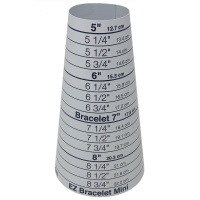 Here at Jewelry Tools we have bangle bracelet sizers, bracelet mandrels, a necklace mandrel, and metal bracelet gauge. Our bangle bracelet sizers have three sizes of bracelet gauges made of heavy gauge base metal and securely attached to a handy ring so you can keep them all together. The EZ Sizers are great for beaders. They are lightweight and easy to travel with as they can be stored flat. Whatever your bracelet gauging needs, we have you covered.