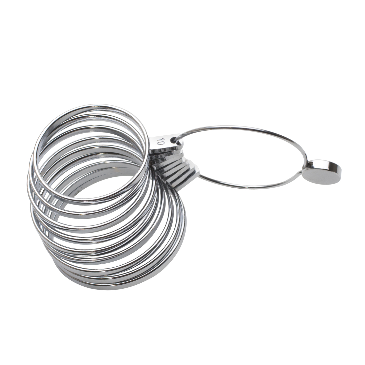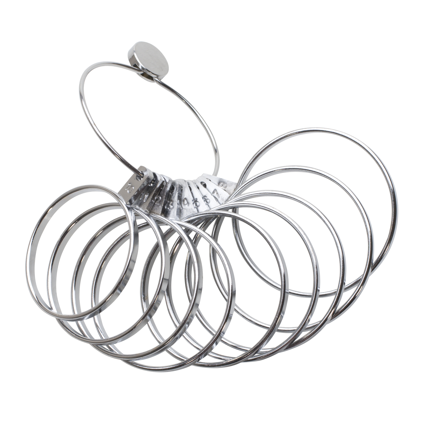 Bracelet gauges are made of heavy gauge base metal, nickel-plated and securely attached to a handy 2-3/4" ring for safe-keeping. Medium: Sizes 10-18 for small to medium teens and smaller adult wrists.