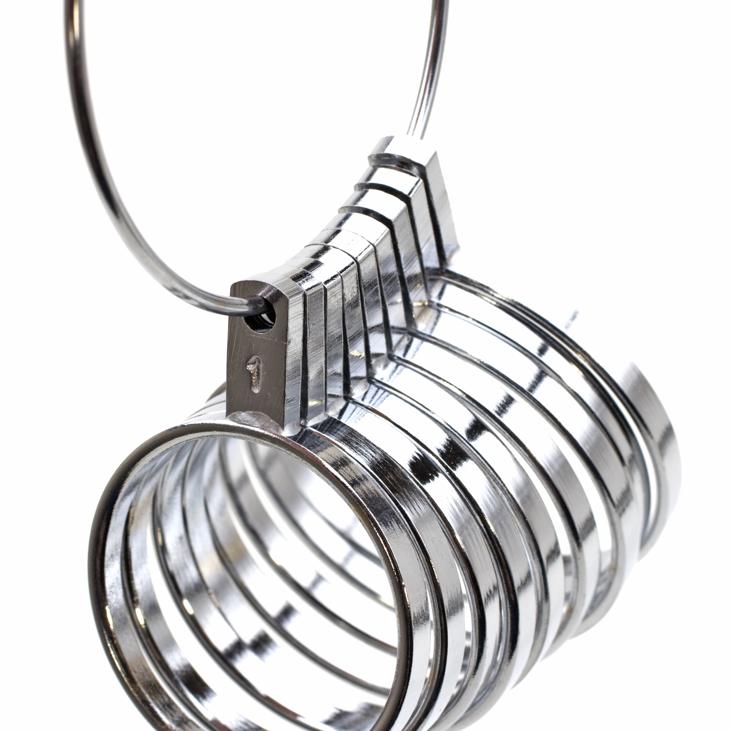 Bracelet gauges are made of heavy gauge base metal, nickel-plated and securely attached to a handy 2-3/4" ring for safe-keeping. Small or baby: Sizes 1-9 for infants and children.