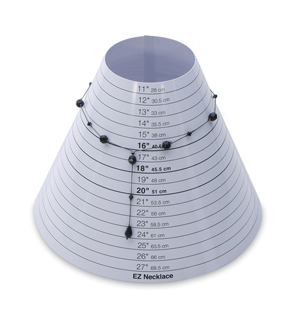 EZ Necklace Sizer is a must for every beader. Make necklaces fit the first time every time. No more restringing, wasted beading wire, wasted crimps, or wasted time. Made of heavy roller polished vinyl for years of use. Lightweight and easy to take with you everywhere. Shipped flat, easy to assemble. Measures sizes 11" up to 27".