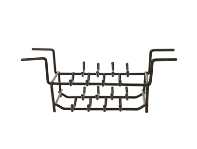 Hanging, 32 hook ultrasonic cleaning racks measures 5" x 3-1/2" x 3". Racks have heavy PVC coating and double sided arms. Fits 1 and 2 quart lengthwise and 3, 6 and 10 quart tanks crosswise.