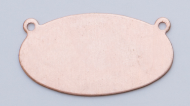 Our blank horizontal copper ovals are perfect for stamping with a beautiful design. We have many different shapes and sizes available. These oval stamping blanks are 1" by 1/2", have 2 rings for attaching chain or other component, and come in a pack of 6.
