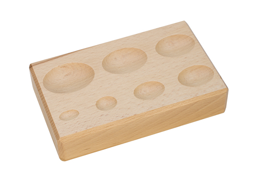 Made of hard wood to prevent scratching or marring, this sturdy forming block has seven oval depressions. Measures 6.25" x 4" x 1.25".