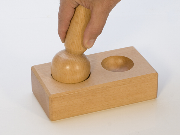 This large dapping set includes a hardwood block and ten punches ranging in size from 65-16mm (2-1/2" to 5/8"). The hardwood block is double-sided with ten machined half spheres that accommodate each size punch. Block measures 7" x 4" x 3".