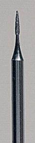 This diamond point is great for stone carving, cleanup work, glass, ceramics and metals. Made of stainless steel with electroplated diamond particles and is medium-fine grit. The head of the point is 0.9mm x 4mm in diamter. Measures 1-3/4" (44.5mm) long with a 3/32" shaft.
