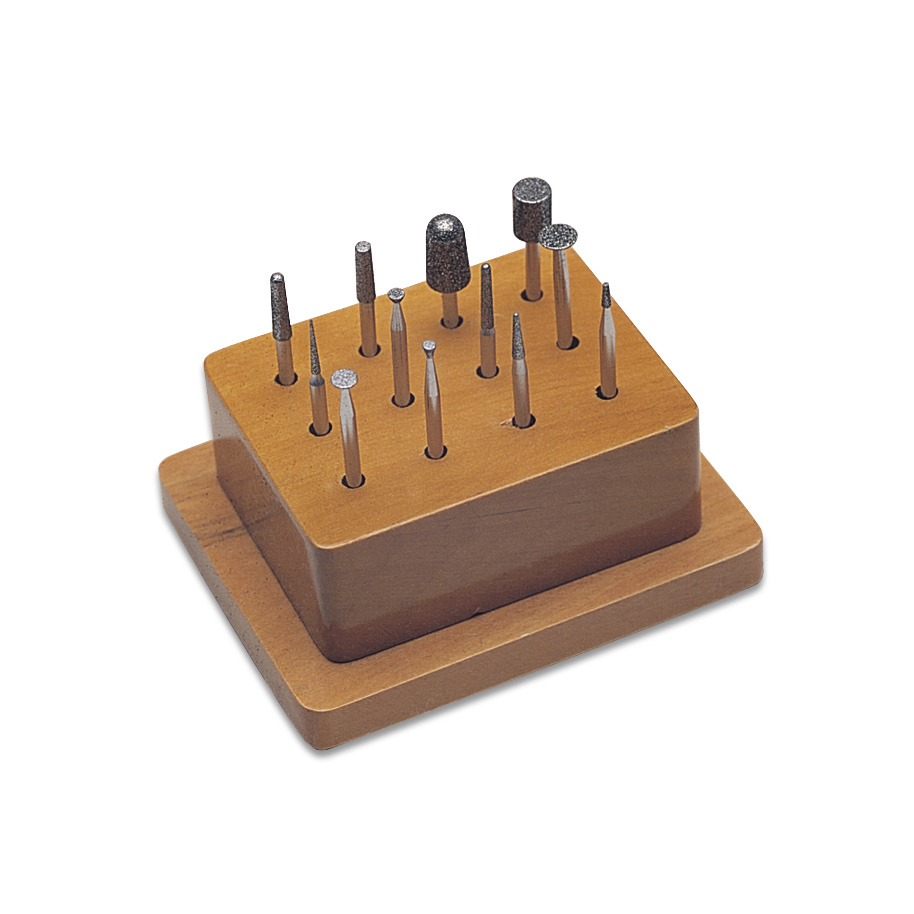 12 piece set available in a wood stand which offers great bench top convenience. 12 pieces include: 2x1.5, 2.7x1.5, 4x1.5, 6x2, 1.5x4, 2x8, 3x11, 7x12, 6x8, 1.5x10, 2x12 and 3x12. Medium-fine grit; 1-3/4" (44.5 millimeters) long; 3/32" shaft