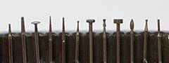 For use in high-speed air driven turbo handpieces with a range up to 80,000 RPM. The quality is excellent, with diamond particles electroplated onto surgical-grade stainless steel. Shanks are 1.6mm (1/16") in diameter, with an average length of 20mm (3/4"). Set of 12; coarse grit.