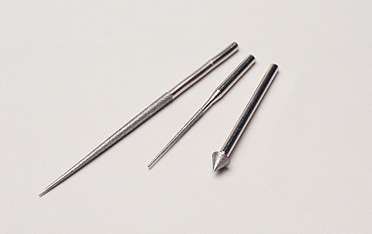 Deluxe 3 Piece Diamond Bead Reamer Tip Set is ideal for enlarging and reaming bead holes. Includes 3 diamond tips that can easily be stored in the handle of DIB-275.00. The 3 tips are: large and small diamond reamer and 45 degree diamond edging point.