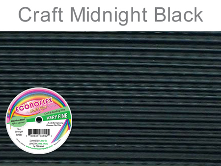 Soft Flex Company introduces Econoflex Wire, a beading wire for beginners, crafters and price conscious hobbyists! This product line is 7 strands of woven stainless steel wire, coated in nylon. Midnight Black, .010 Inch (Very Fine), 30 Feet