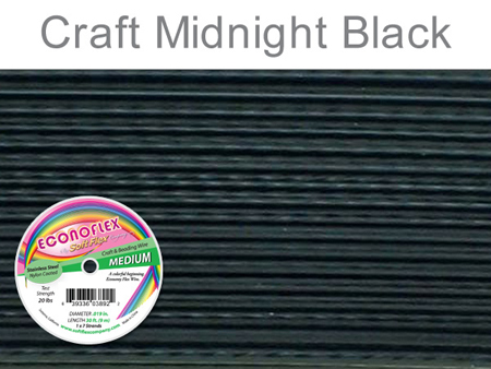 Soft Flex Company introduces Econoflex Wire, a beading wire for beginners, crafters and price conscious hobbyists! This product line is 7 strands of woven stainless steel wire, coated in nylon. Midnight Black, .019 Inch (Medium), 30 Feet