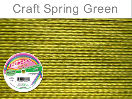 Soft Flex Company introduces Econoflex Wire, a beading wire for beginners, crafters and price conscious hobbyists! This product line is 7 strands of woven stainless steel wire, coated in nylon. Spring Green, .014 Inch (Fine), 30 Feet