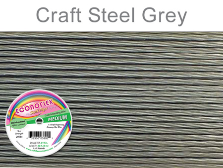 Soft Flex Company introduces Econoflex Wire, a beading wire for beginners, crafters and price conscious hobbyists! This product line is 7 strands of woven stainless steel wire, coated in nylon. Steel Grey, .019 Inch (Medium), 30 Feet