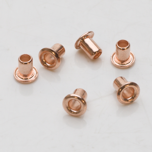 Our new eyelets are perfect for use with the riveting tool. Create smooth, perfect flares in every piece. Each eyelet has a semi-rounded head that is open in the center to allow a string to be placed through it. Sold in packs of 24. Made in USA.
