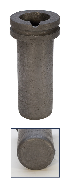 Great for electric melting furnaces. 1 kg graphite crucible has a capacity of 32 ounces and 643 dwt. 65 by 125 millimeters