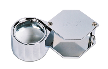 This silver, 10X "hex" triplet with a 21.5mm lens offers the user a wide field of view and great optics. The case is hexagonal, but the head is actually an elegant twelve faceted design. Comes in a convenient leather case.