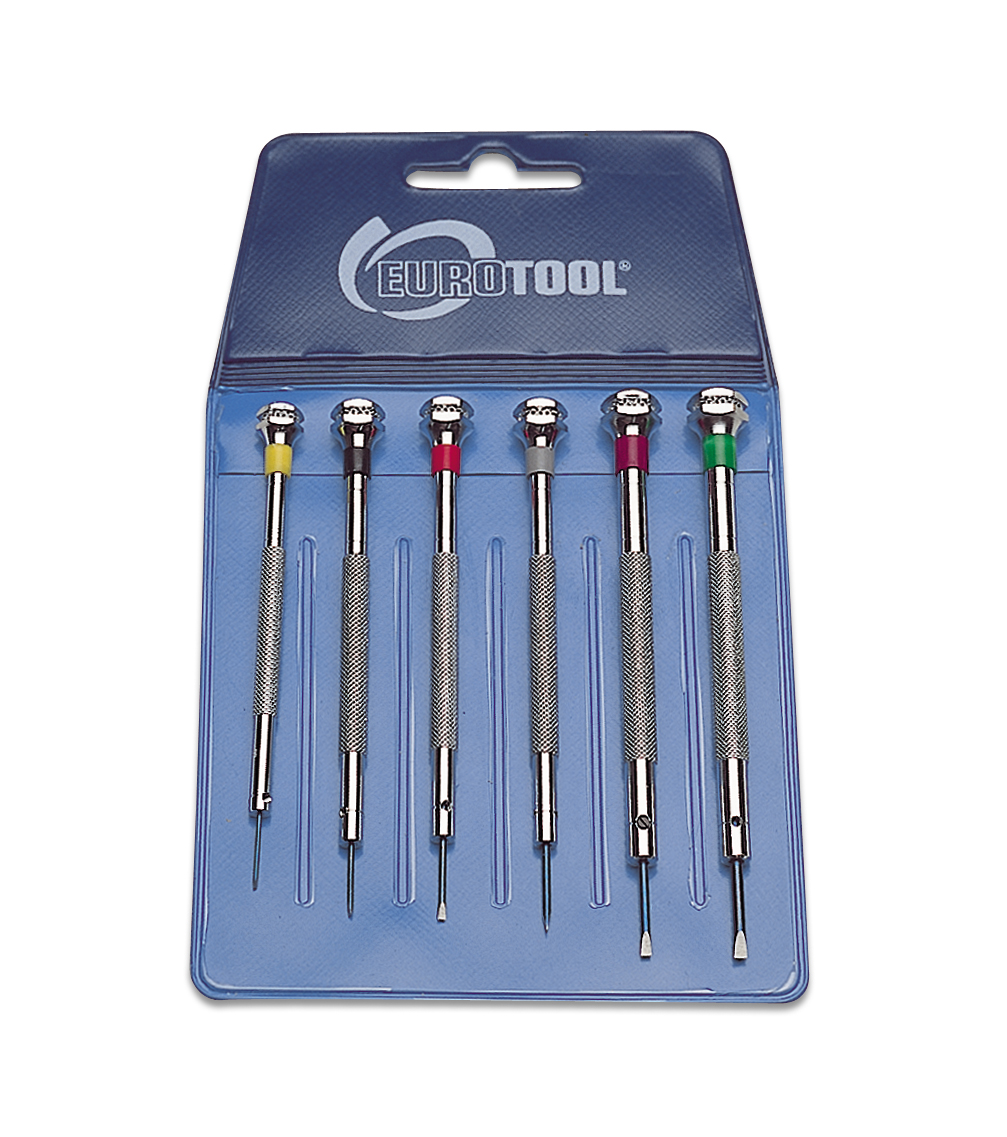 Our color-coded six piece set features the following sizes: 0.80, 1.00, 1.20, 1.40, 1.60 and 2.00mm. Like our well-known SCR-980.00, this set features set-screw type screwdrivers. Packaged in a handy, reusable storage pouch.