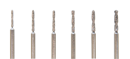 Our 6 piece 3/32" shank Swiss-made twist drills with electroplated diamond particles are the ultimate for drilling stones, pearls, glass or ceramics. Use with standard handpieces and a small amount of water as lubricant. All drills are medium-fine grit.