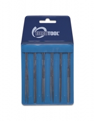Set of 12 extra-fine needle files allows you to get into tight spots. All are 4" (100mm) long and cut 2. This is the smallest set available and a must for fine work. Use file handle HAN-739.00 with this set.