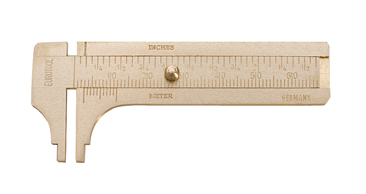Great for measuring gemstones and other jewelry components. Notched jaws and a 1/10th millimeter vernier for accuracy. Made of brass; 60 Millimeters (2-1/2")