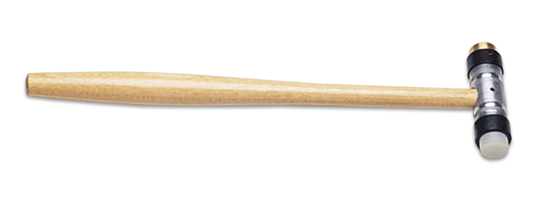 Mallets with interchangeable faces and shellacked hardwood handle. Replacement faces available to allow any combination of brass, nylon or fibre. Face diameter 1/2". Overall length 8-1/4".