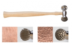 This texturing hammer is perfect for working with non-ferrous metals. Our double-sided hammer enables you to make attractive patterns, stripes and dimples, which give jewelry and other metal items a unique appearance. All you do is place sheet metal on a flat metal block or anvil and strike sharply. In no time you will have interesting patterns. Hammers have a Rockwell hardness of 48, and the more the hammer is used the more interesting the patterns become. Let your imagination take over! Our hammers provide you a simple and easy way to give your finished piece extra flair. 10" in length.