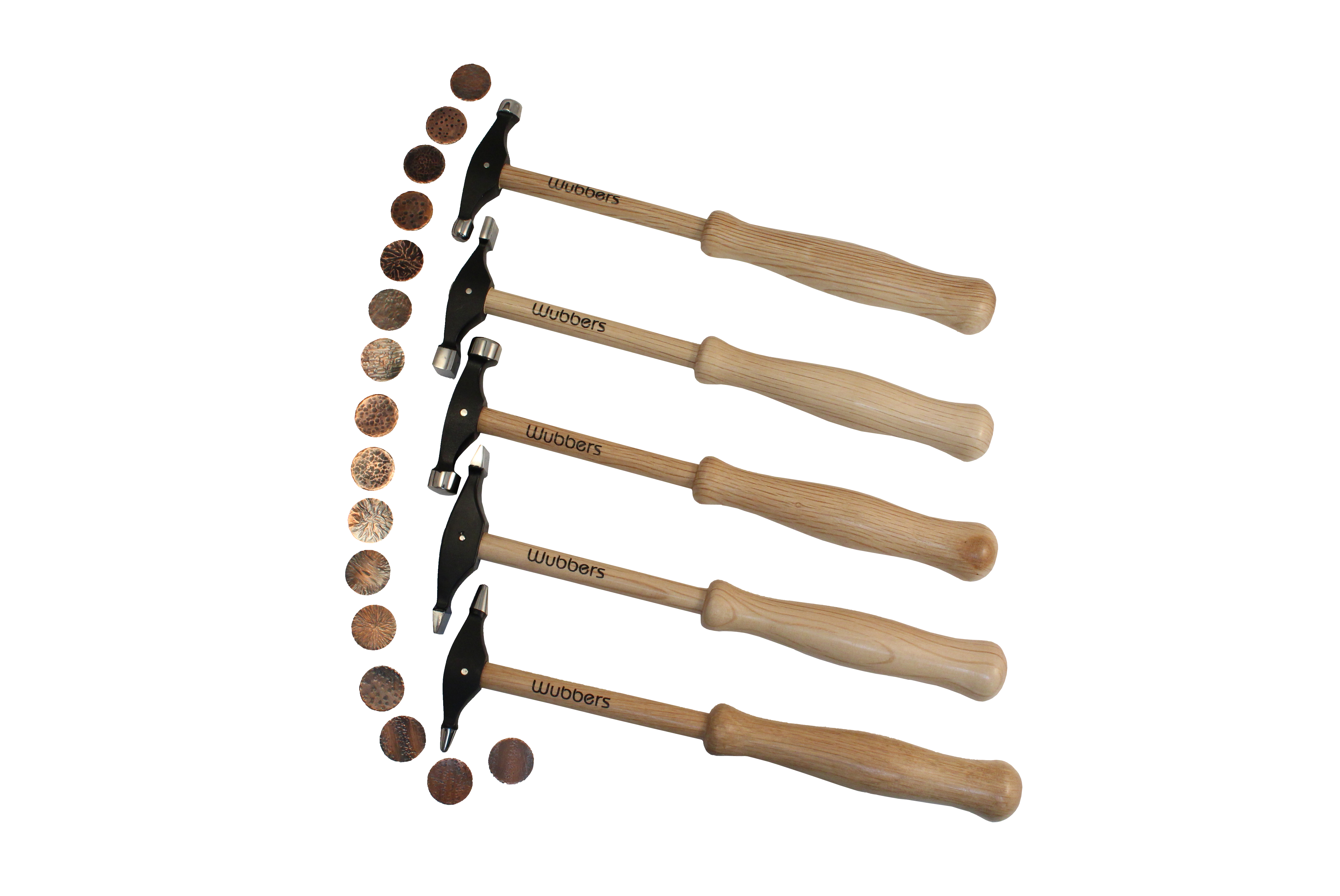 Artisan’s Mark Hammers by Wubbers are a high quality line of finely detailed designer hammers. They are perfect for texturing, riveting, forming, planishing, embossing, getting into tight places, and so much more. This set has five different types of hammers and includes a convenient stand to keep them handy.