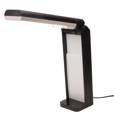 The perfect lamp for a multitude of jobs! A reasonably priced portable folding light with a 13 watt daylight bulb, included. This lamp is made of high impact black plastic, with a pure white reflective surface, this light features an adjustment screw to control arm tension. 5300-5500K Kelvin temperature. This is a must for every workspace or bench, especially at this price. Approx. measurements: 10.5" tall, base 3.5"x 3.5", lamp section 9.5".