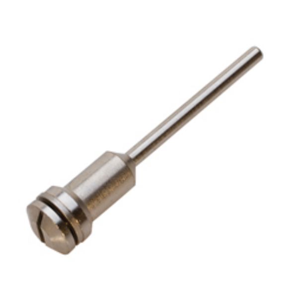 Large nickel-plated screw mandrel with 1/8 shank. 1/4 thread with a threaded length of 3/8. Sold per dozen.