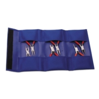 We carry canvas pouches that zip closed or roll up and velcro closed. Our vinyl back canvas pouches come in blue or khaki. Our canvas tote is great for beaders, wire wrap artists and so forth. This bag has a large outer pocket and many pockets inside. This back zips closed so even if your tools fall out of the pockets they won't be lost. We carry two versions of this bag. One zips open like a regular bag, but the other zips on three sides so that it can be folded flat when opened. Whatever you choose, we know you'll love our tool pouches.