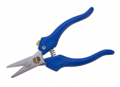 Will cut anything from paper to heavy tin with their tempered stainless steel blades. The plastic handles provide comfort, lessen fatigue and feature a return spring. Made in Germany. Length 5-1/2".