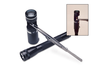 The perfect way to determine whether diamonds have been fracture filled. Used with a Maglite mini flashlight, this fine instrument becomes a portable darkfield, allowing the user to identify the fillings and flaws in diamonds. Featuring a high intensity miniature darkfield and distortion-free 18mm 10X triplet, our Darkfield Diamond View is finished in black oxide for glare free viewing. Comes complete with one Maglite and is offered in a leatherette pouch.