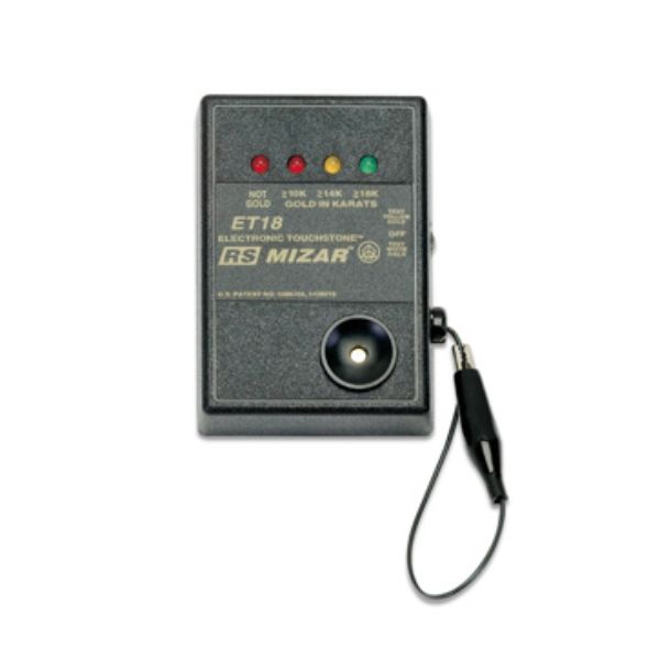 For slightly more than the cost of a simple acid testing kit, the ET-18 precisely determines gold karat values equal to or greater than 10K, 14K, and 18K. Pocket sized and battery operated with a full one year warranty, testing acids included.
