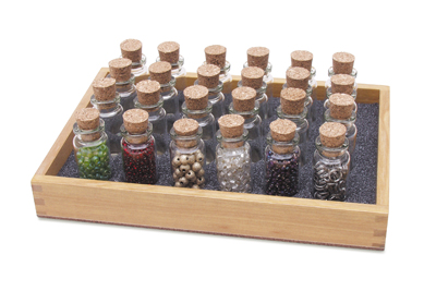 Our wood storage tray is the best way to store beads in bottles. The soft foam holds 20 of our seed bead bottles securely as the the holes in the foam are slightly smaller than the diameter of the bottles, so holds the bottles in place. Trays measure 7-1/4" x 5-1/4" x 1" and can be stacked or carried. Bottles sold separately.